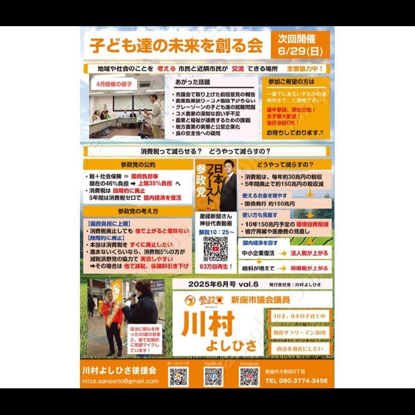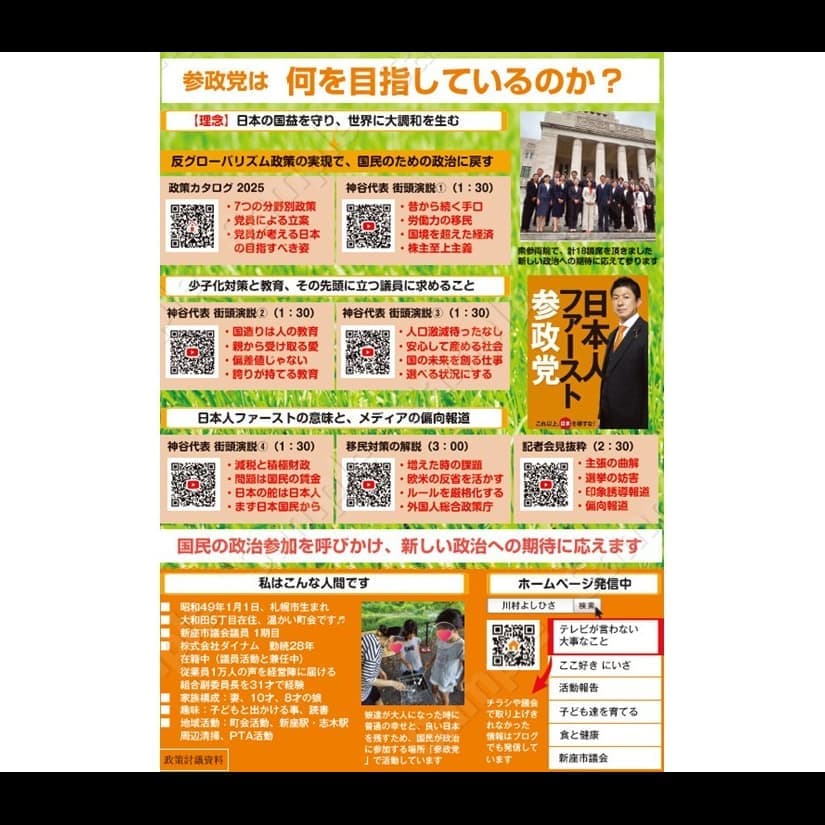 これは国民がまとまって選挙で意志を示せば実現出来ることです。私は国民にとって当たり前の政治を実現するために「国民参加型の参政党」に入りました。今までの政党がちゃんとやってくれれば、参政党に人が集まり全国各地で熱心に活動する必要はありませんでした。